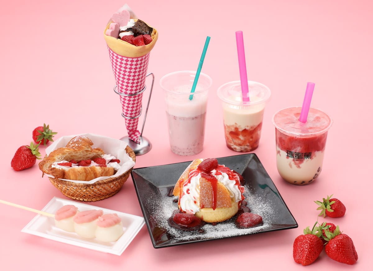 タウン内の各店舗では、真っ赤ないちごをふんだんに使用した可愛さ満点のメニューが勢揃い。