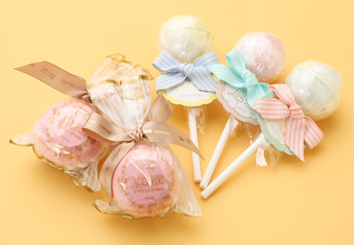 タウン内の各店舗および富士急ハイランド園内レストラン、ハイランドリゾートホテル&スパ「MACARONI CLUB」でフェアメニューを注文して3つのスタンプを集めた方には、春らしいパステルカラーのバスボムがプレゼントされます。