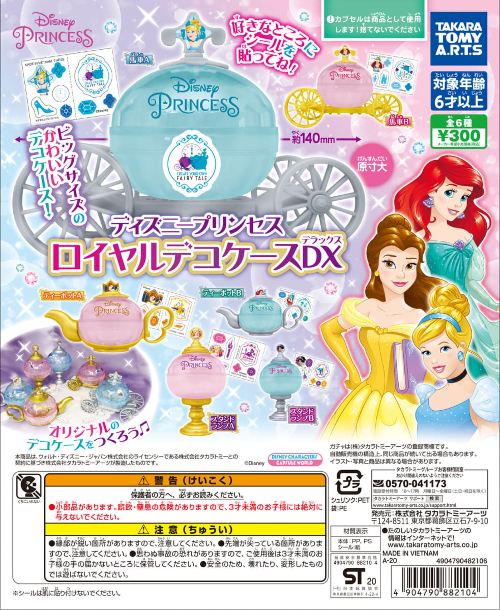 タカラトミーアーツのガチャに、オリジナルの小物入れが作れる「ディズニープリンセス ロイヤルデコケースDX」が登場。