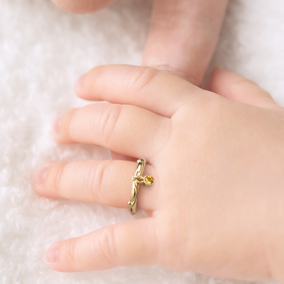 内側の輪を赤ちゃんの指、外側の輪をママやパパの指に合わせて作る、パーソナルなジュエリー。
