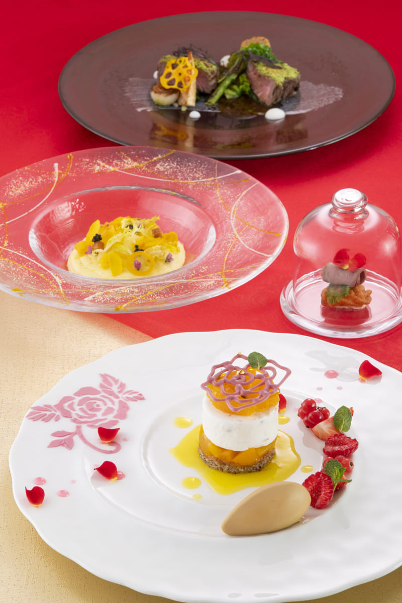 ディナーコースではバラをモチーフにしたメニューを提供。