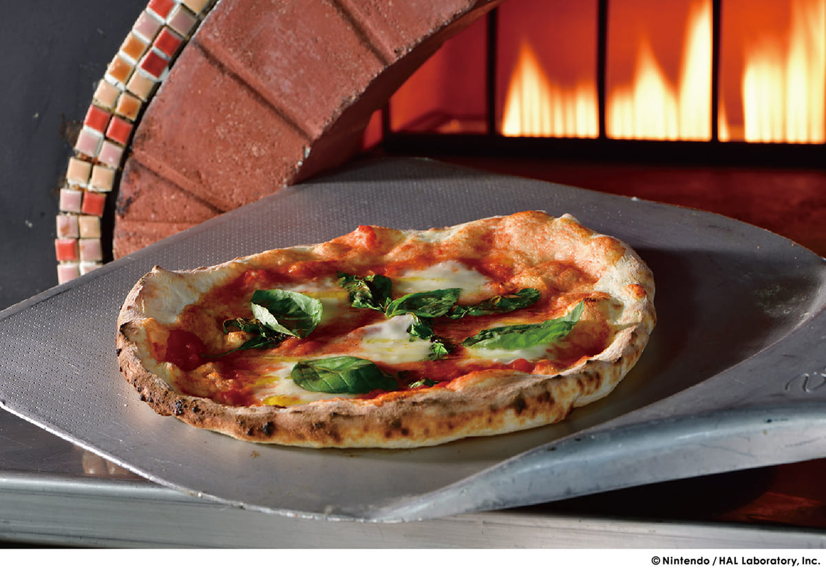 フードメニューには「カービィカフェ TOKYO」ですでにおなじみ、店内の窯で焼き上げた「カービィカフェの本格窯焼きピッツァ」が、常設を機に博多にも登場!