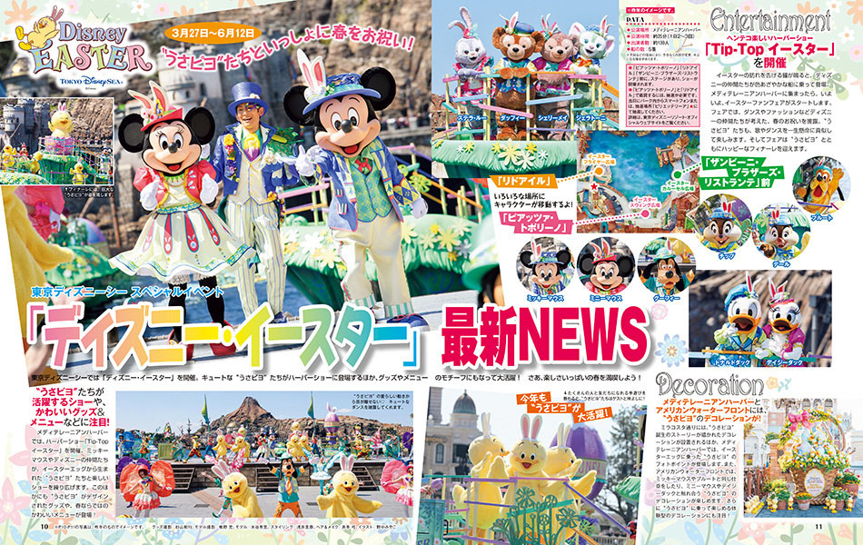 東京ディズニーシー特集では、[“うさピヨ”たちといっしょに春をお祝い! 東京ディズニーシー スペシャルイベント「ディズニー・イースター」最新NEWS]や、