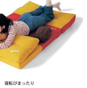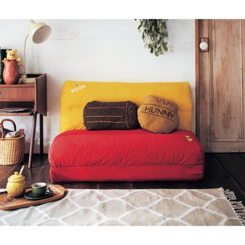 イエロー×赤の配色がオシャレな「くまのプーさん」デザインのソファーベッド。