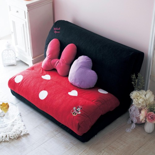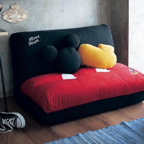 黒×赤×イエローのイメージカラーをあしらった「ミッキーマウス」デザインのソファーベッド。
