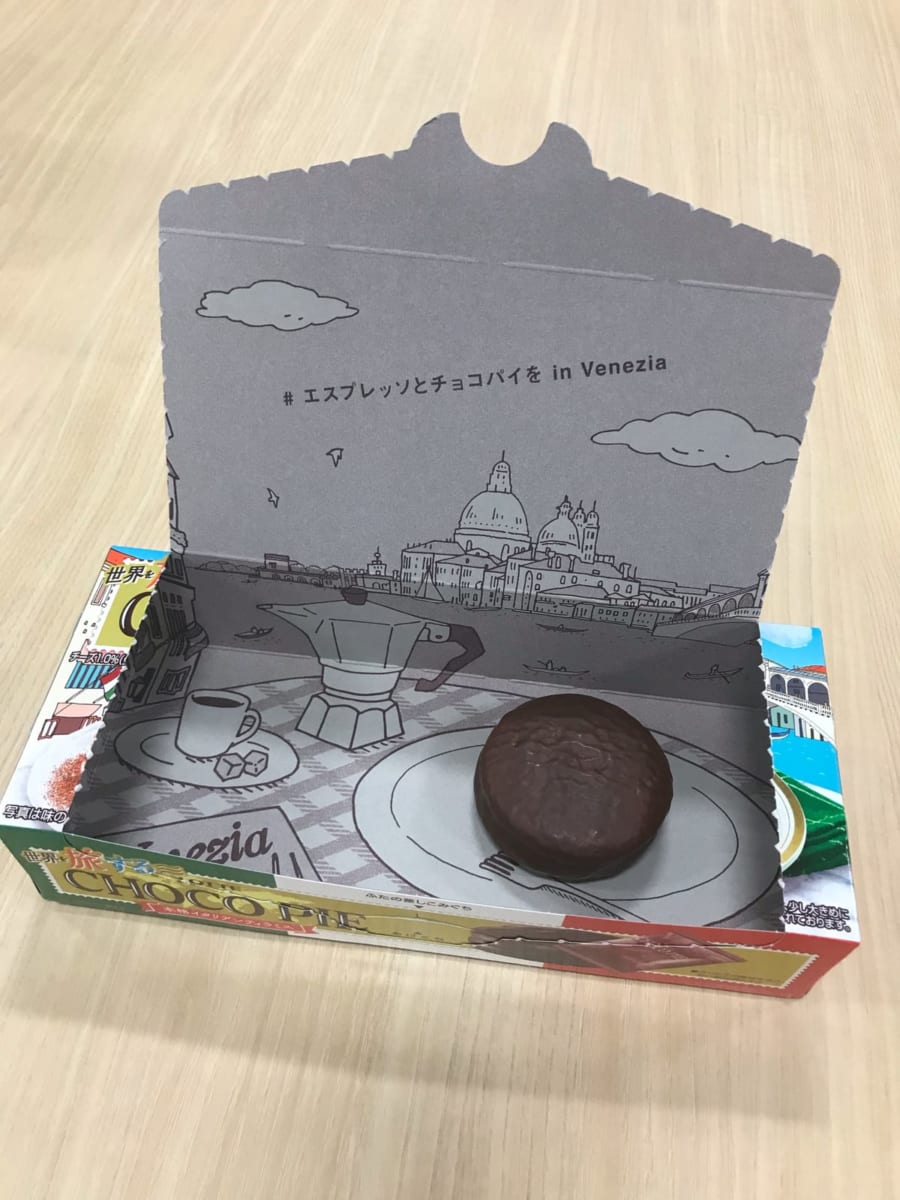 カフェから見た景色をイメージしたパッケージとティラミス風のチョコパイで、イタリア旅行が疑似体験できます☆