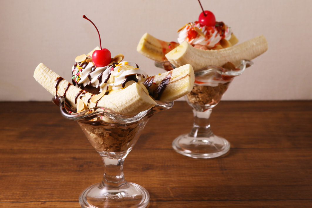 スヌーピーのバナナスプリット(チョコレート(左)/ストロベリー(右))