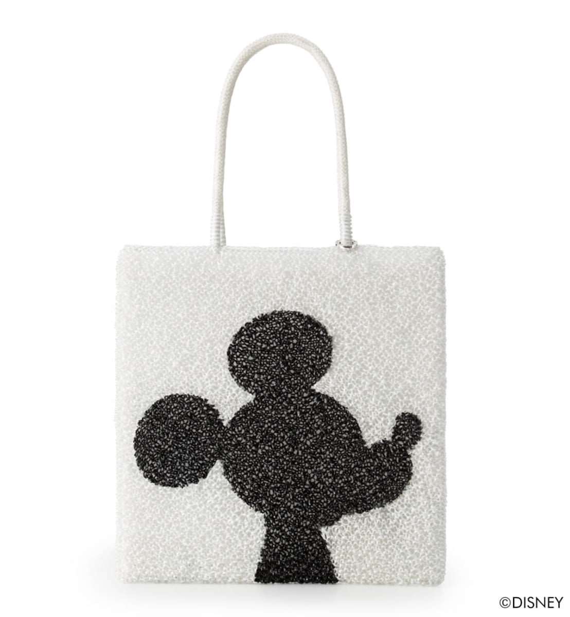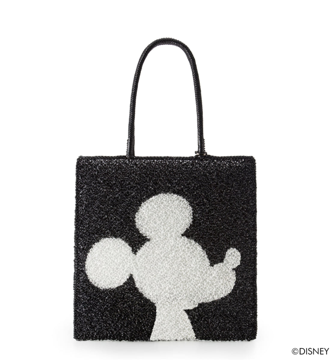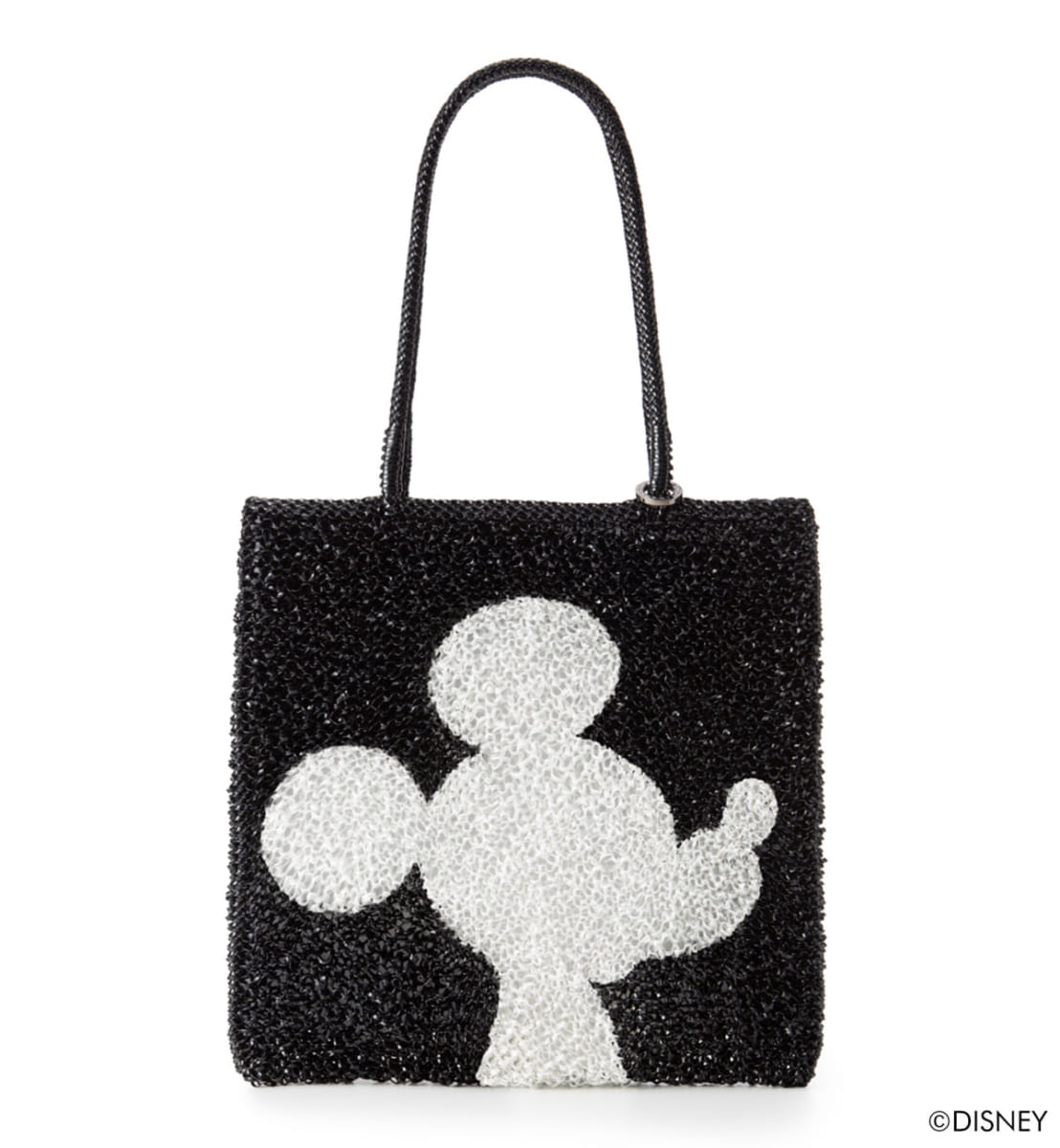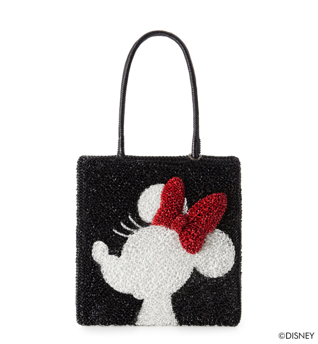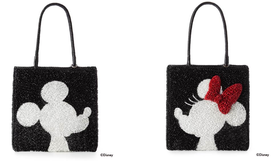 クラシカルな「ミッキーマウス」と「ミニーマウス」の横顔シルエットが大胆にあしらわれたトートバッグをはじめとした、アンテプリマ定番の「ワイヤー」バッグ。