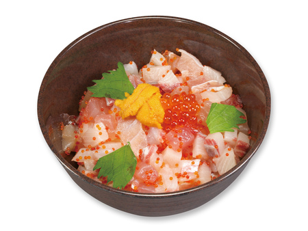 「季節の海鮮丼」は高級ネタの代表格であるウニやイクラのほか、旬の天然魚が使われた豪華などんぶり!