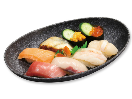 中トロ、極厚サーモン、ハマチ、ウニ、イクラといった人気のネタが一度に食べられるお得な盛り合わせもランチに登場します。