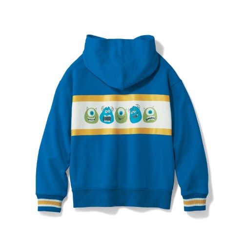 ブルー×イエローの配色使いがポップな『モンスターズ・インク』デザインのパーカ。