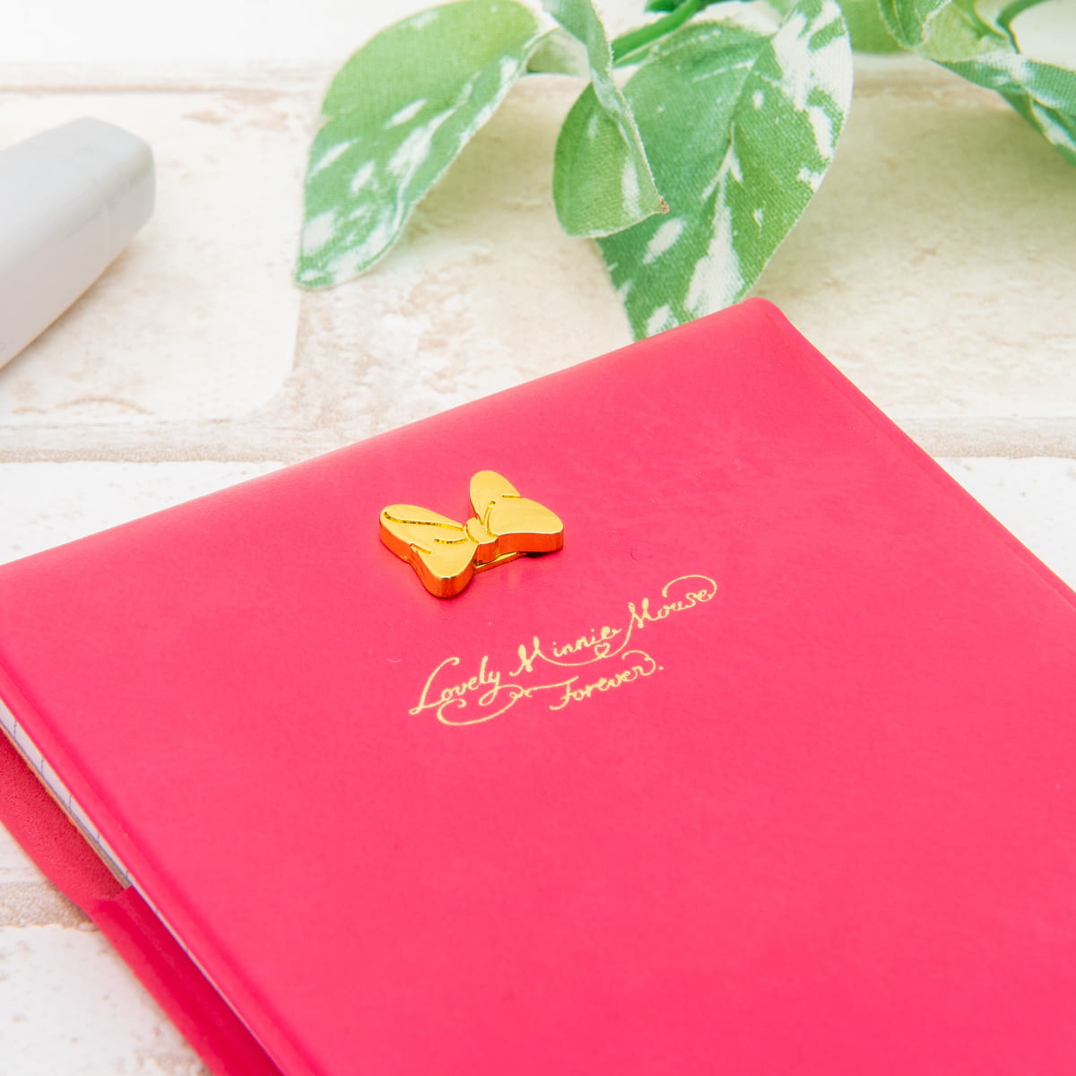 女性らしい華やかなピンクのカバーに、おしゃれな「ミニーマウス」らしいリボンのアイコンチャームが施されています☆