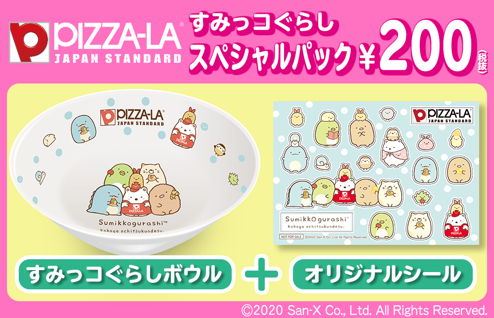 宅配ピザの「PIZZA-LA」に「すみっコぐらし」のボウルとシールが購入できる「すみっコぐらしスペシャルパック」が、2020年3月5日(木)から数量限定で登場します。