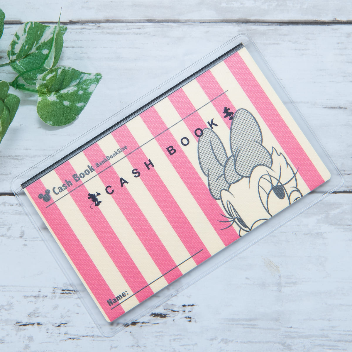 華やかなレッドを基調とした「ミニーマウス」デザインの通帳型キャッシュブック。