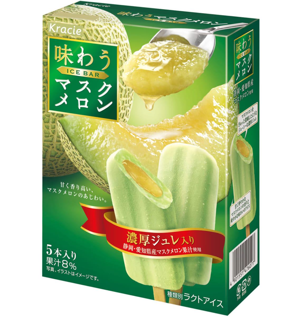 静岡・愛知県産のマスクメロン果汁を使用した濃厚なジュレ入りのジューシーなアイスバー。