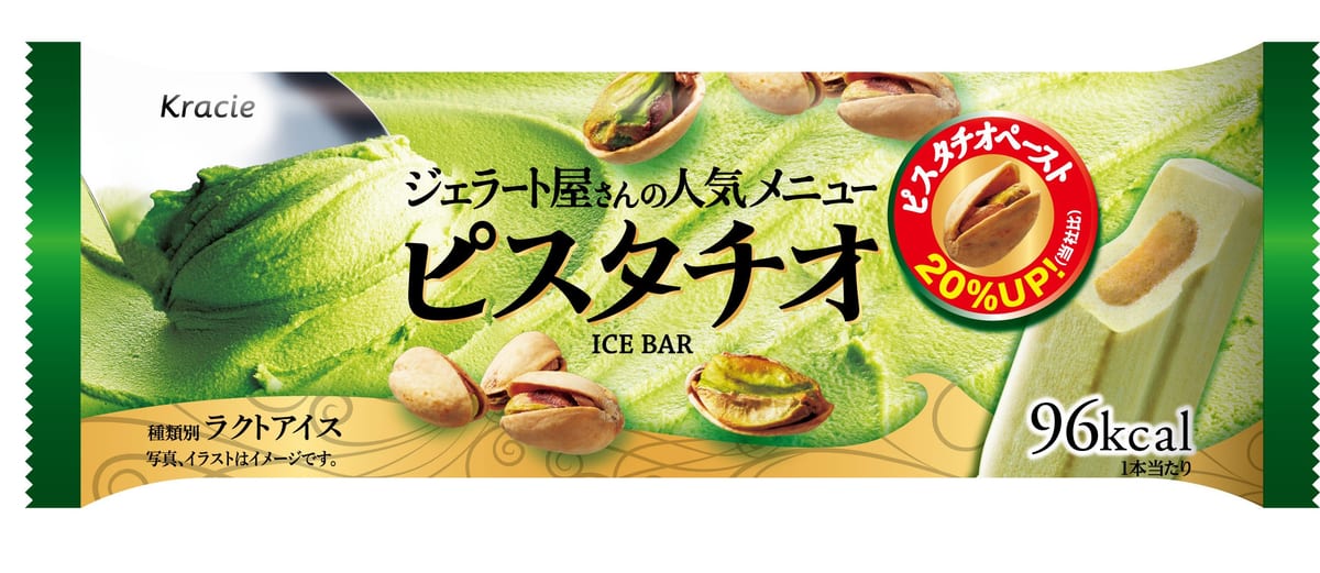また、香り高いピスタチオ風味が人気の「ピスタチオ アイスバー」はピスタチオペーストを20%増量し、ますます香り高く濃厚な味にリニューアルされました。