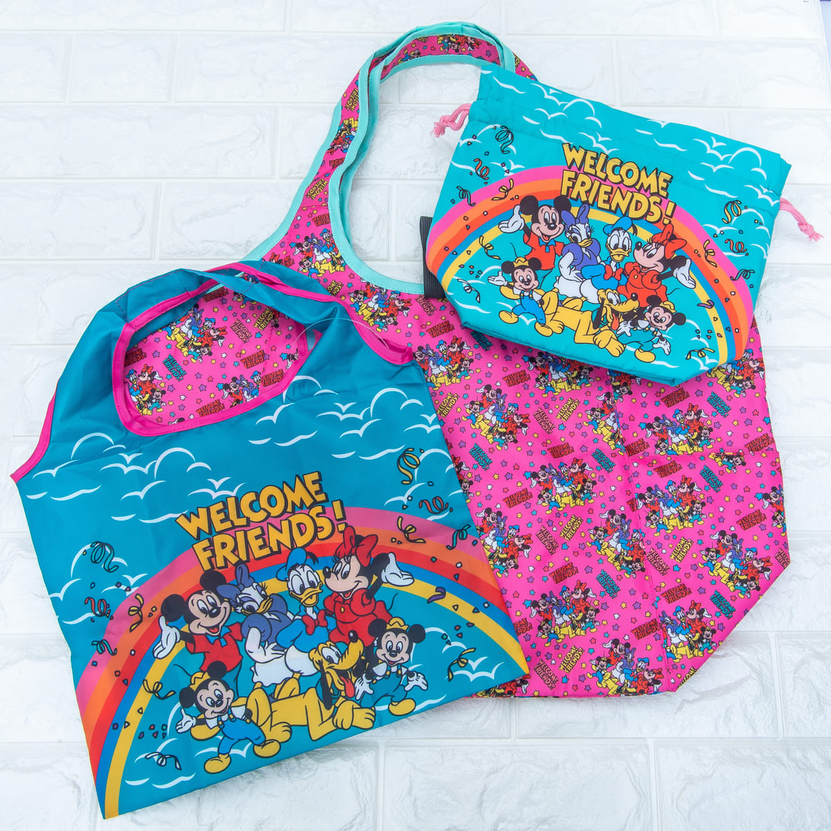 「ミッキー&フレンズ」がデザインされたランチボックスやマチ付き巾着、ショッピングバッグなどがラインナップされています☆