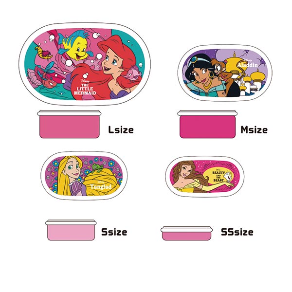 いずれもディズニー映画『リトル・マーメイド』の「アリエル」、ディズニー映画『アラジン』の「ジャスミン」、ディズニー映画『塔の上のラプンツェル』の「ラプンツェル」、ディズニー映画『美女と野獣』の「ベル」の4人のディズニープリンセスが大集合したデザインです。