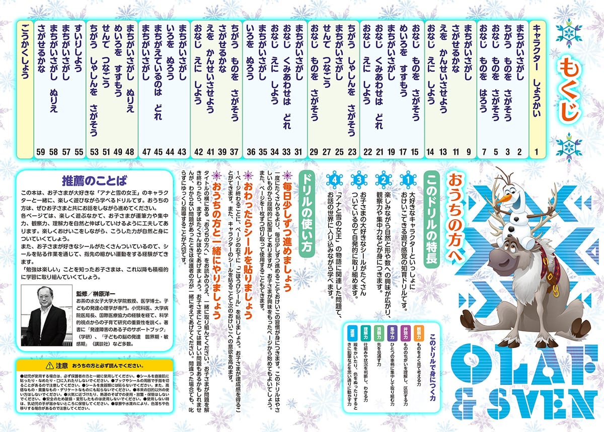 大好きな「アナ」や「エルサ」、「オラフ」たちと一緒に、遊びながら学べるドリル。