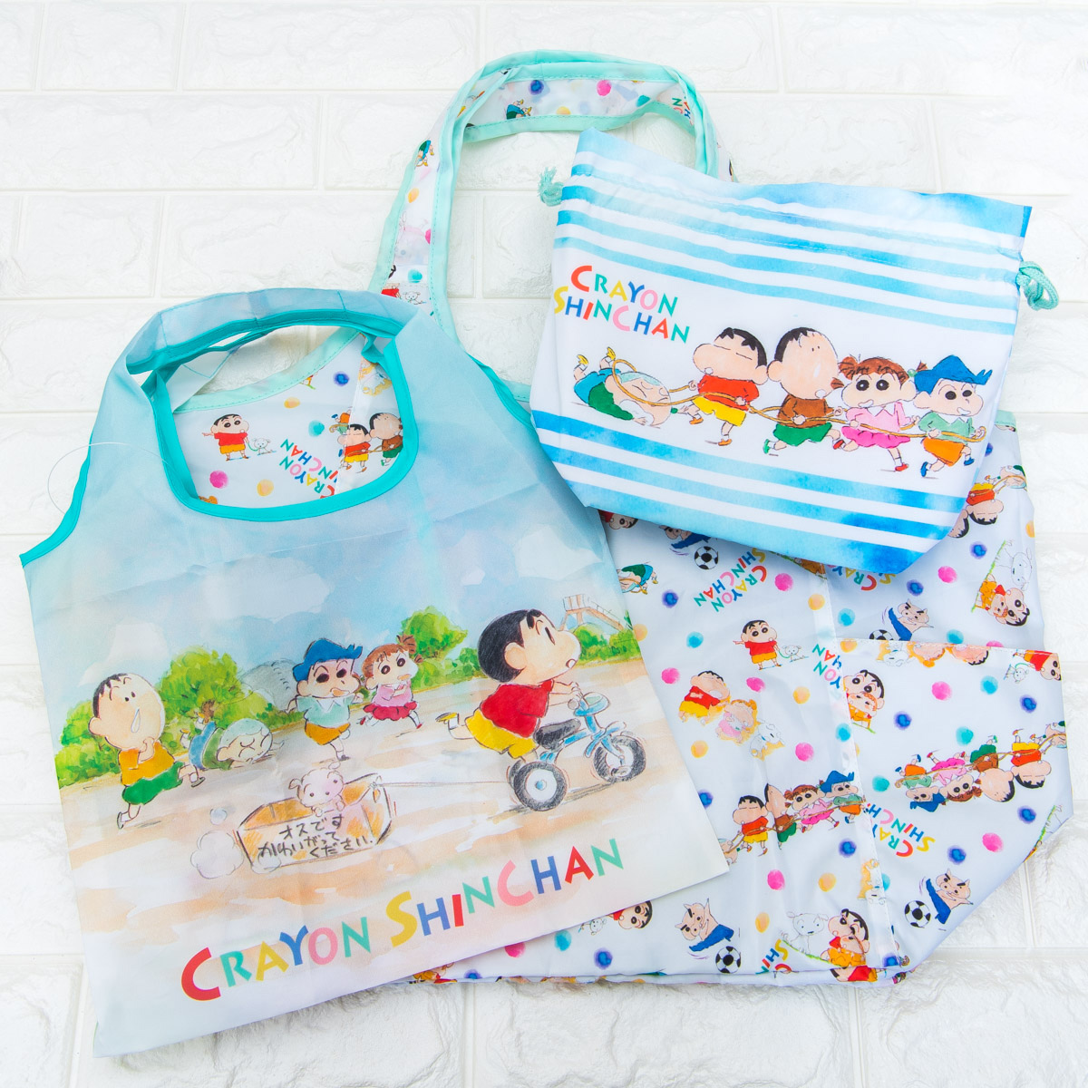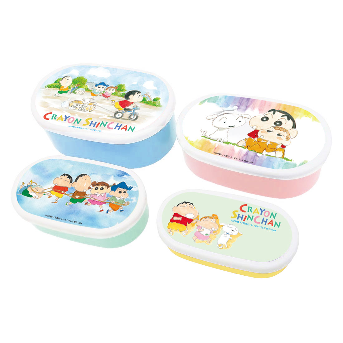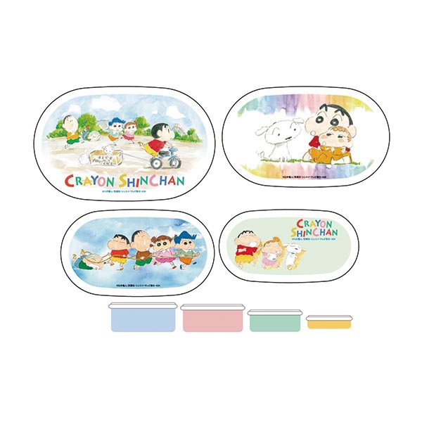 しんちゃんやカスカベ防衛隊が水彩アートでデザインされた「4Pランチボックス」と「箸+箸ケース」のほか、あわせて使いたい「マチ付巾着」や「ミニショッピングバッグ」などのグッズを紹介していきます☆
