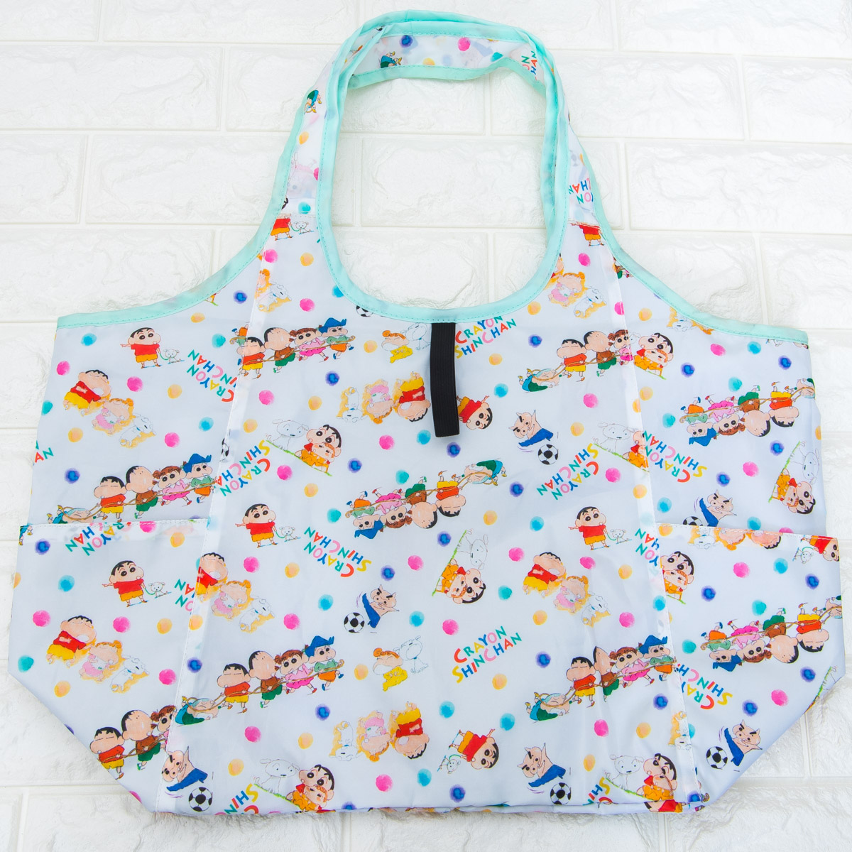 「クレヨンしんちゃん」デザインのアルミシート付くるくるバッグ。