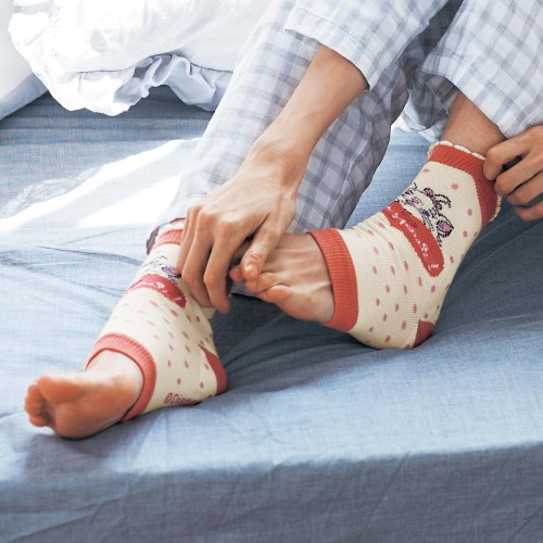 また、足先・指がムレにくいデザインでオシャレな部屋着のコーディネートとしても使えます。