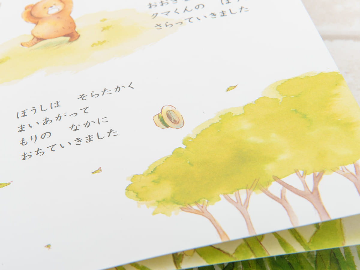 絵本は全てハードカバー、糸とじ製本としていて、本文に使用している紙も手触りのよい厚みのあるものを選び、一般的な絵本に近いかたちに作っています。