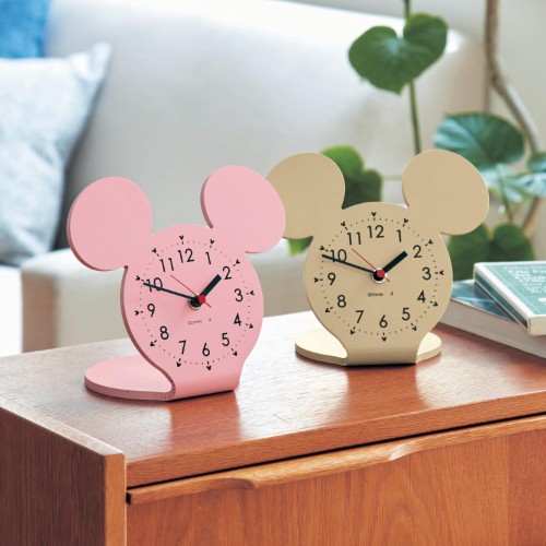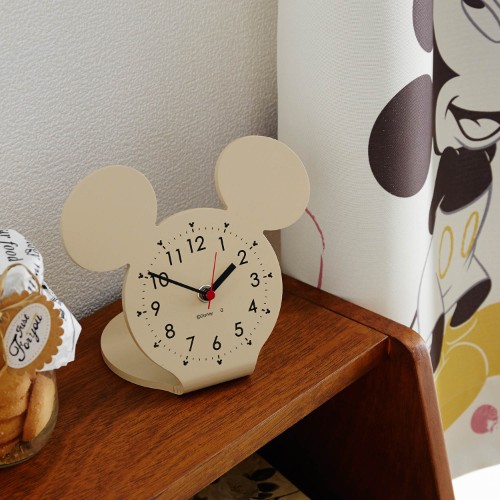 どこにでも置きやすくて愛らしいデザインのミッキーシェイプの卓上時計。