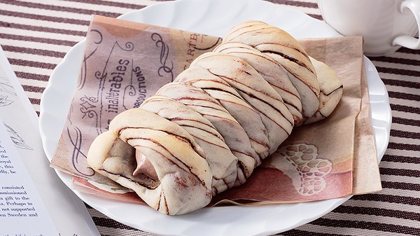 軽い口当たりのチョコホイップを詰めた、チョコ風味のもちもちとした食感のコロネ!