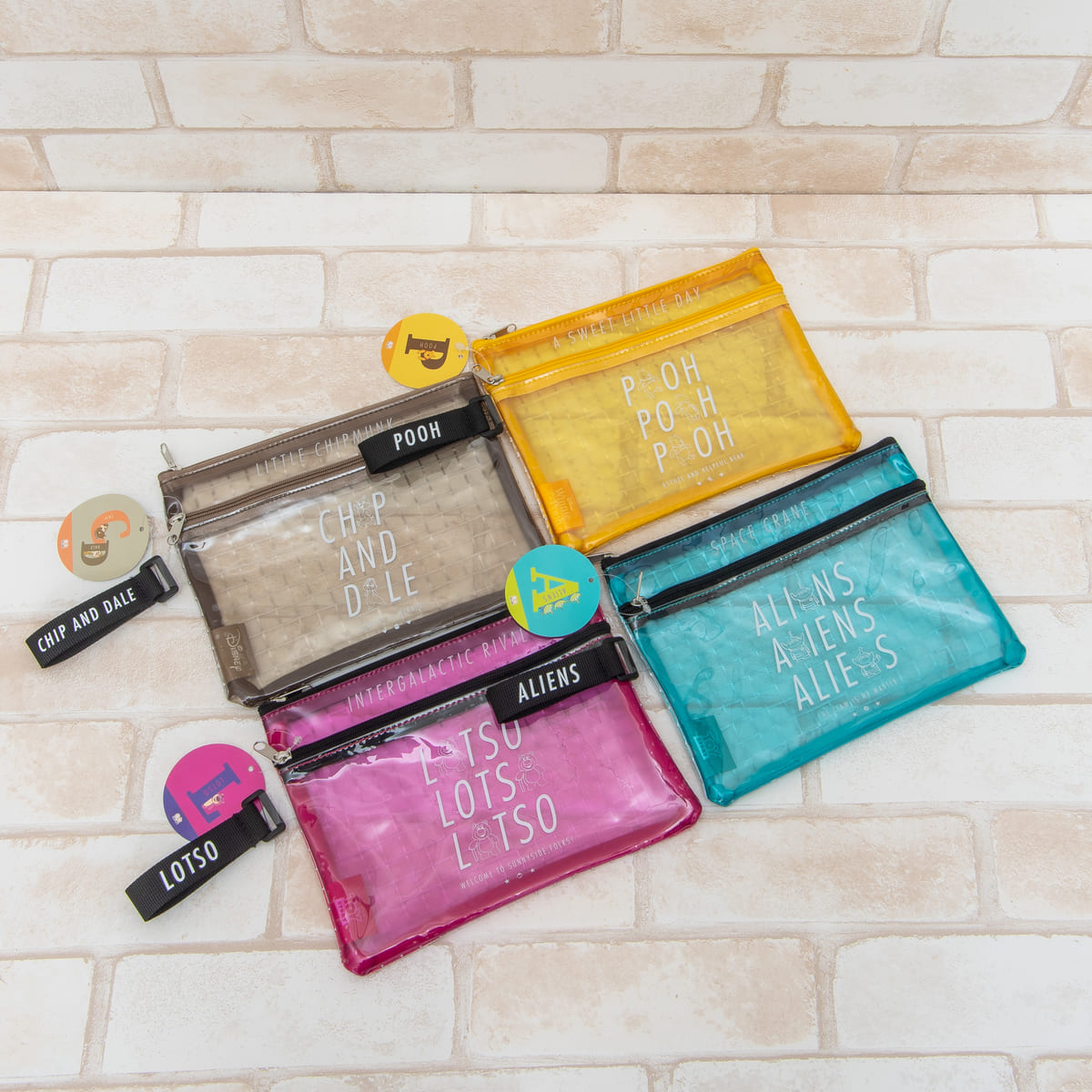 メッシュ入りのビニール素材がおしゃれでかわいいクリアペンケース。