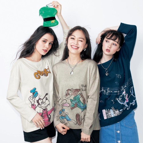 前後にキャラクターのプリントをあしらった、ディズニーデザインの「ビッグ長袖Tシャツ」の紹介でした☆