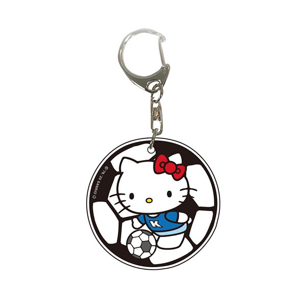「ハローキティ I LOVE SPORTS!」サッカーデザインのアクリルキーチェーン。