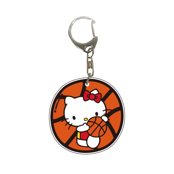 「ハローキティ I LOVE SPORTS!」バスケットボールデザインのアクリルキーチェーン。