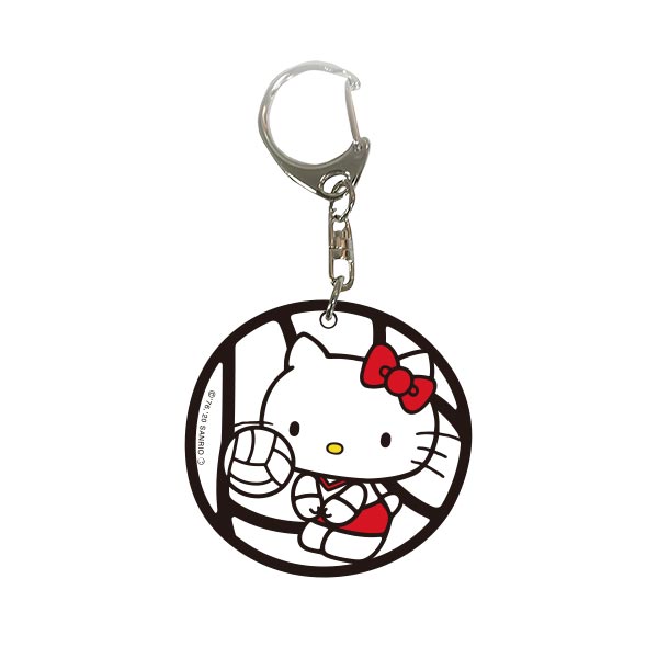 「ハローキティ I LOVE SPORTS!」バレーボールデザインのアクリルキーチェーン。