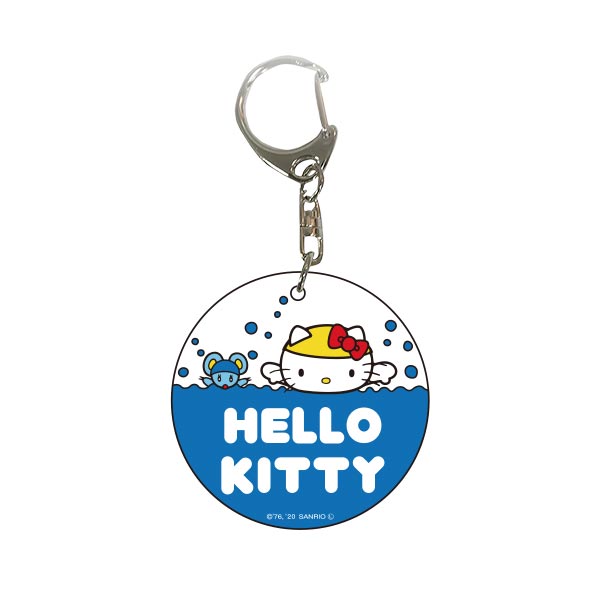 「ハローキティ I LOVE SPORTS!」水泳デザインのアクリルキーチェーン。