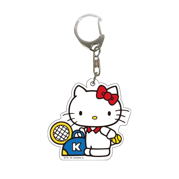 「ハローキティ I LOVE SPORTS!」テニスデザインのアクリルキーチェーン。