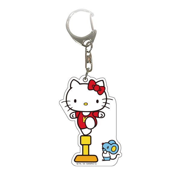 「ハローキティ I LOVE SPORTS!」体操デザインのアクリルキーチェーン。