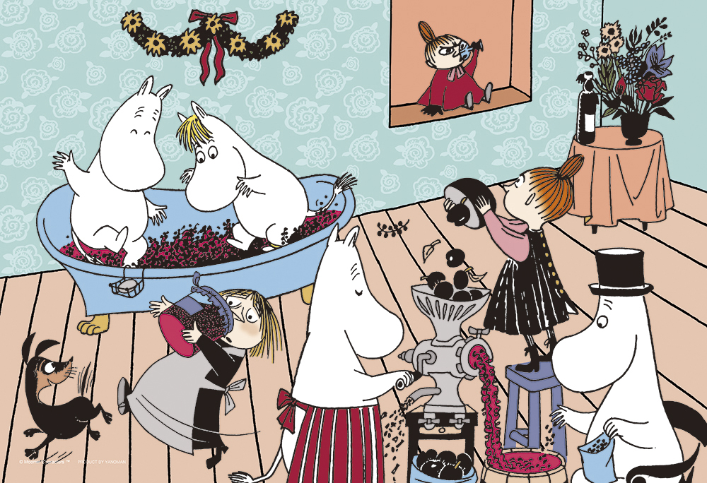 ムーミンが一生懸命ぶどうを踏んで、ママのお手伝いをしている微笑ましいシーンをパズルにしました。