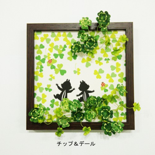 クローバーの総柄とフェイクグリーンで奥行のあるアートが演出された「チップ&デール」