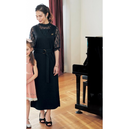 リボン付き裾レースワンピース 母娘リンクモチーフ