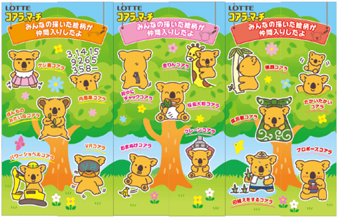 可愛いコアラ・ユニークなコアラなど、様々な絵柄が楽しいコアラのマーチ!