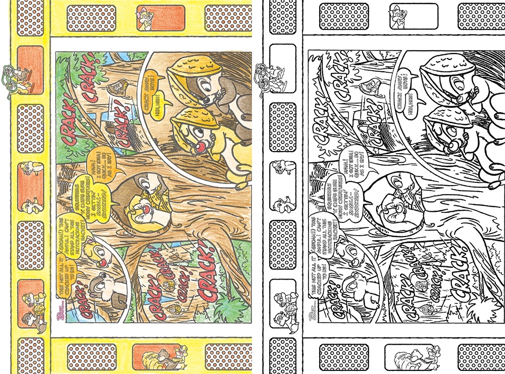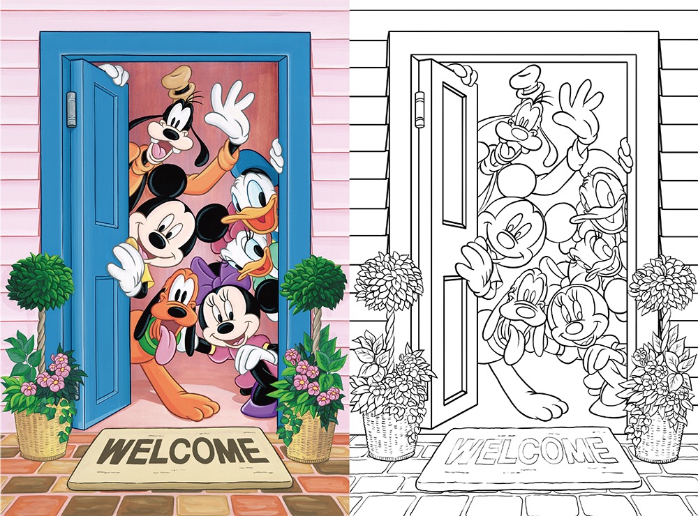自分で色を付けて楽しめる線画ページには「ミッキー&フレンズ」のにぎやかアートや
