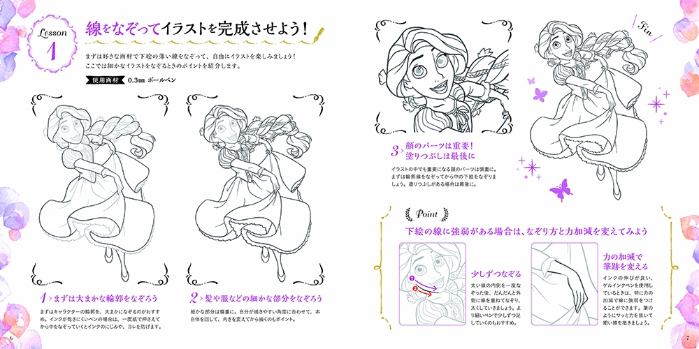 ディズニーの世界を堪能できる繊細で魅力的な原画をお手本にしたレッスン付きです!