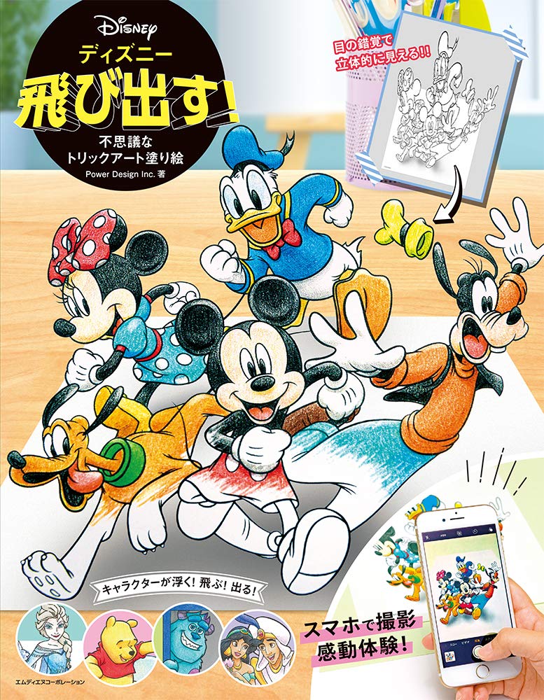 ディズニーならではの動きのあるシーンを、トリックアートで楽しめる立体塗り絵。