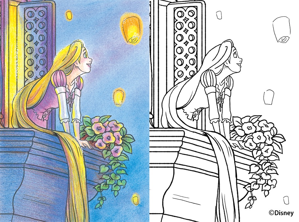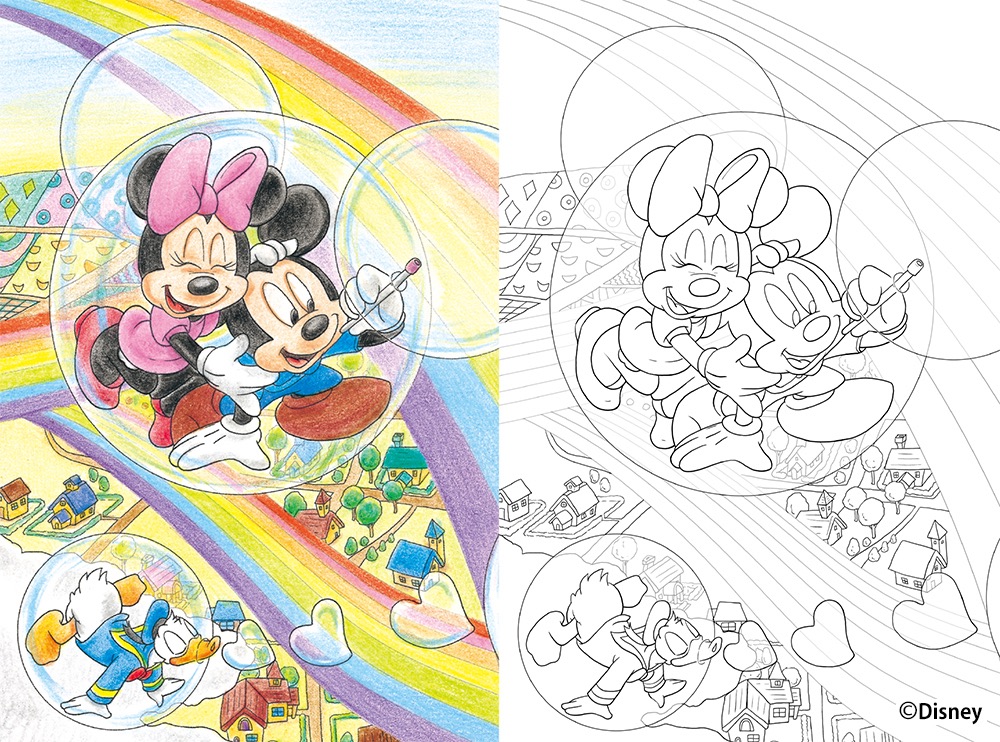 ディズニーの世界を堪能できる幸せ色の塗り絵。