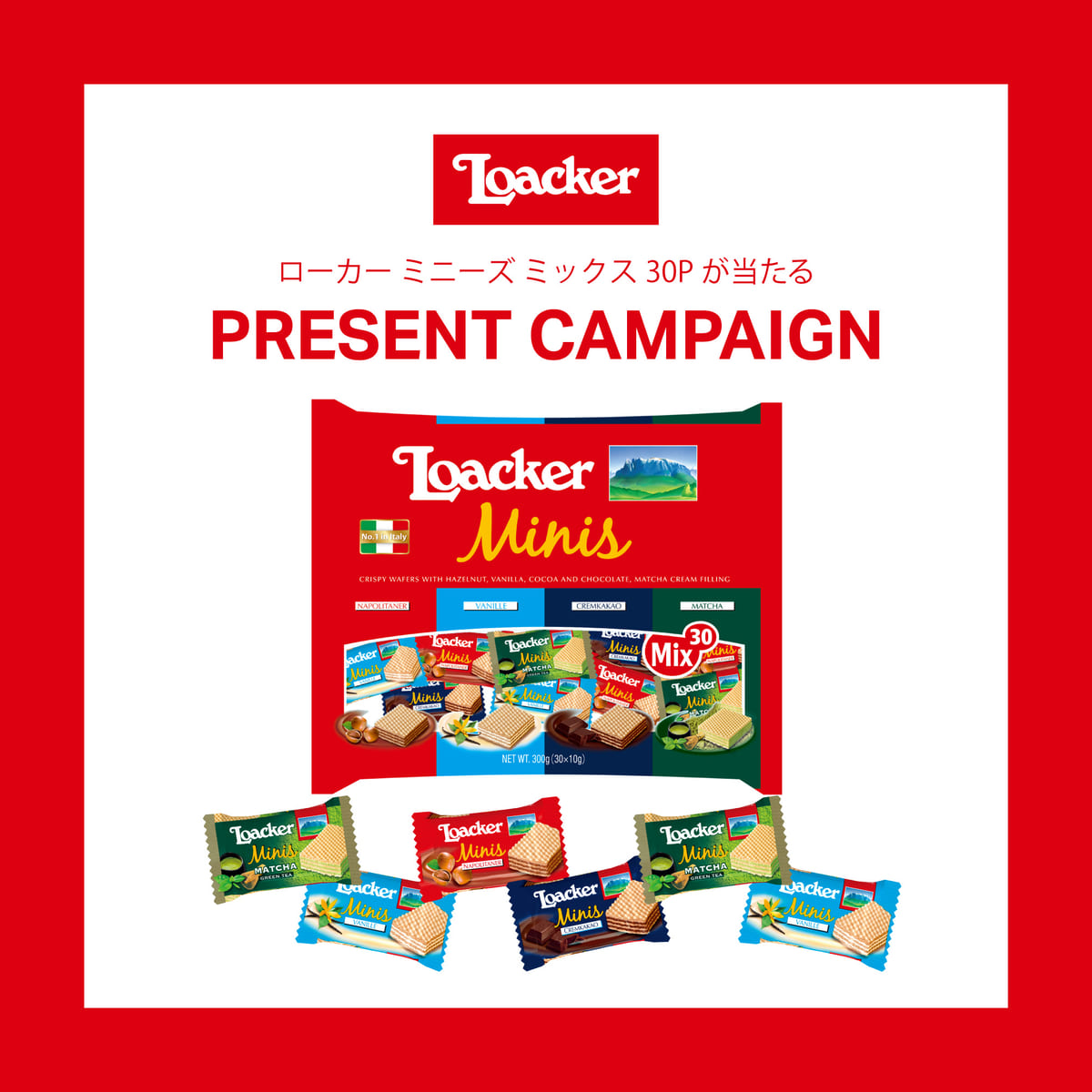 イタリア発の世界No.1ウエハースブランド「ローカー」より、個包装タイプ「ミニーズ ミックス 30P」が登場!