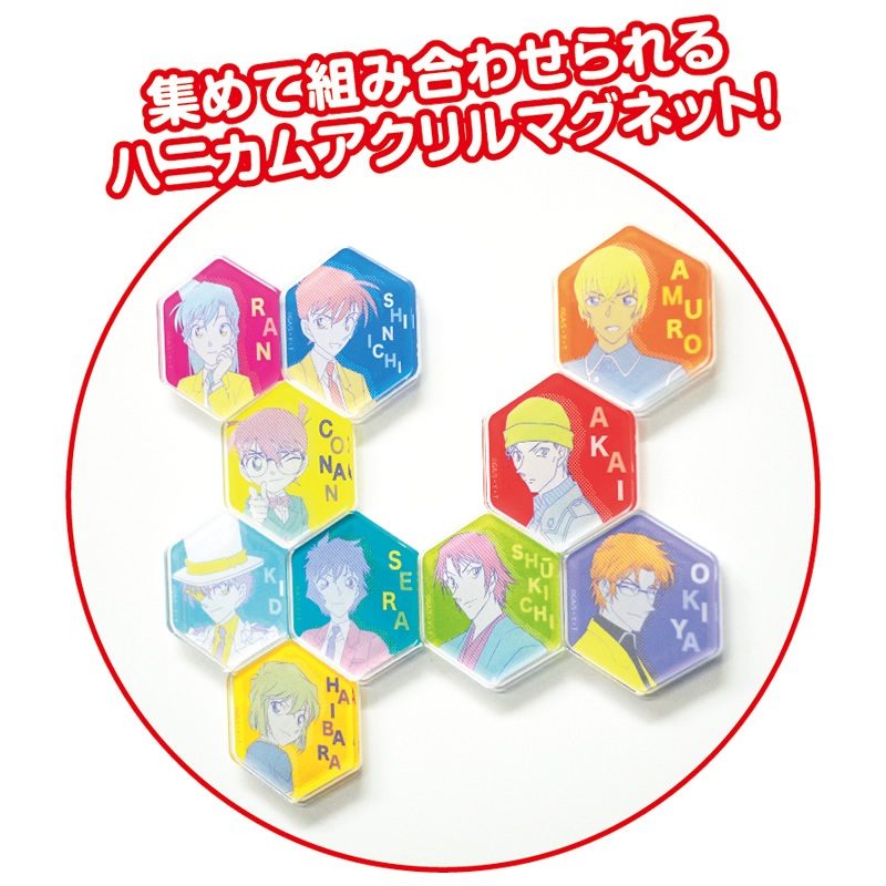 集めて組み合わせられる六角形のマグネットで、「怪盗キッド」や「安室透」など全10種の人気キャラクターデザインがラインナップされています☆