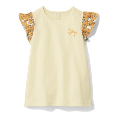 総柄プリントの袖フリルが可愛い女の子のTシャツ。