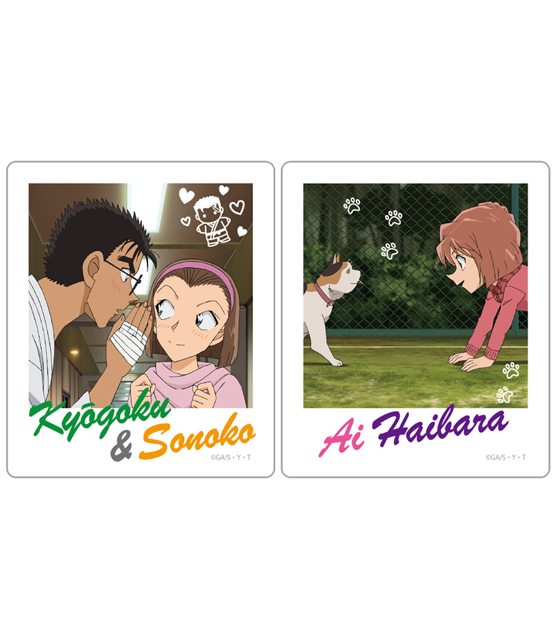 「京極&園子」デザインと「灰原哀」デザインのインスタントフォトマグネット。