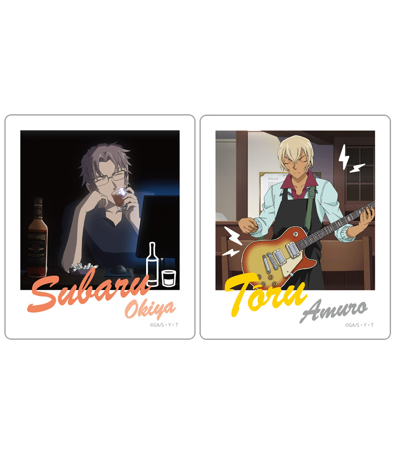 「沖矢昴」デザインはバーボンをロックで飲んでいるシーン、多芸多才な「安室透」のデザインはギターを演奏しているシーンのイラストが使用されています。